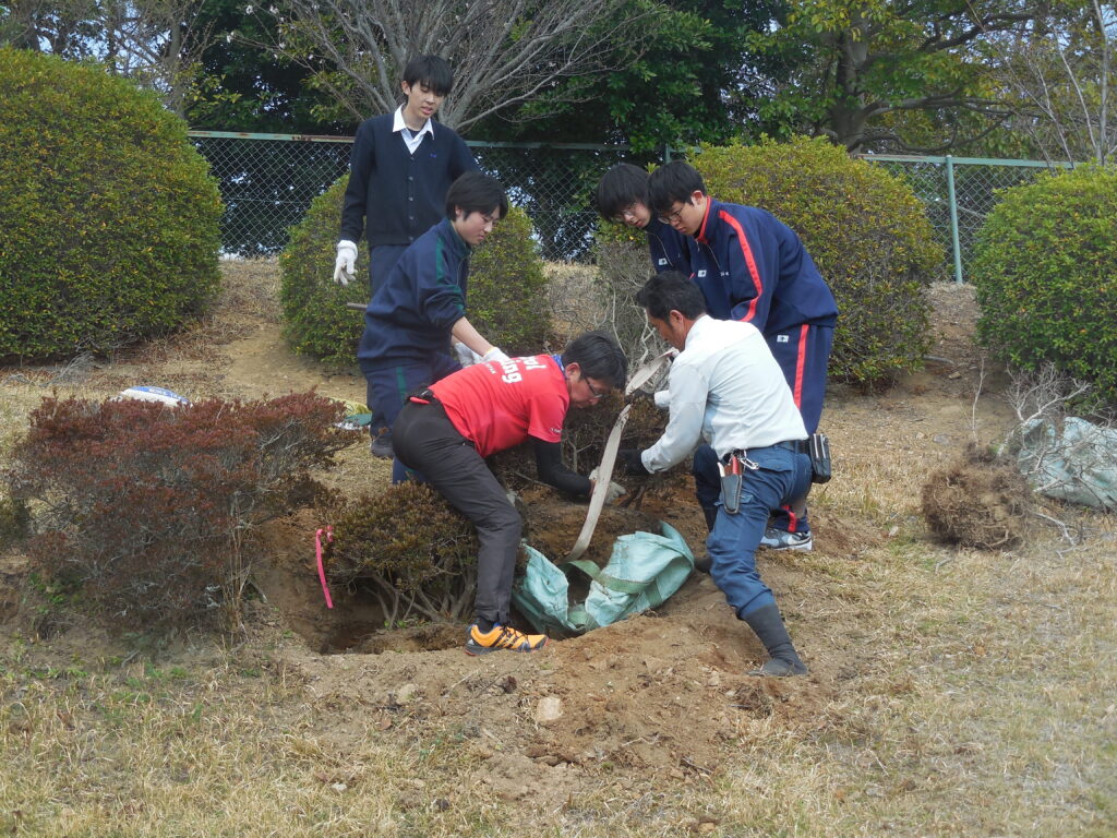 2026年3月24日 / 最終更新日時 : 2026年3月24日 西尾 東高校 正門前のサツキ植え替え 令和8年3月24日(火)同窓会長萩原様、元PTA会員松崎様、本校ボランティア部の皆さんに正門前のサツキ「ヒガシコー」の植え替えをしていただきました。ありがとうございました。