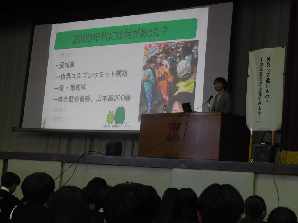 令和7年11月10日(月)第7限 外務省大臣官房国内広報室長 越智 友佳子 様にお越しいただき、国際理解教育講演会を開催しました。